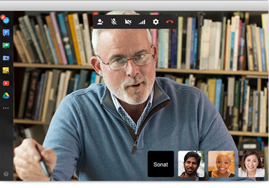 Kuruluşunuz içindeki veya dışındaki en çok 15 kişiyle Hangout'lar düzenleyin. Ekran konuşan kişiye otomatik olarak odaklanır ve akıllı sessize alma özelliği arka plan gürültüsünü önler.Ekibinizin tamamı Hangout'a masaüstü veya dizüstü bilgisayarlarından, tabletlerinden ya da telefonlarından kullanımı aynı derecede kolay bir deneyimle katılabilir.Kolay ekran paylaşımı ile en son slaytlarınızı gözden geçirin veya uzaktan ders verin, sonra da yerleşik sohbet ile kullanışlı bağlantılar gönderin.