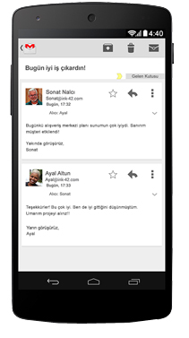 Güçlü iOS ve Android uygulamaları edinin. Tüm mobil cihazlarda ve masaüstü bilgisayarlarda, İnternet bağlantınız yokken iletileri okuyabilir ve ileti taslakları oluşturabilirsiniz; tekrar çevrimiçi duruma geçtiğinizde iletileriniz gönderilecektir.